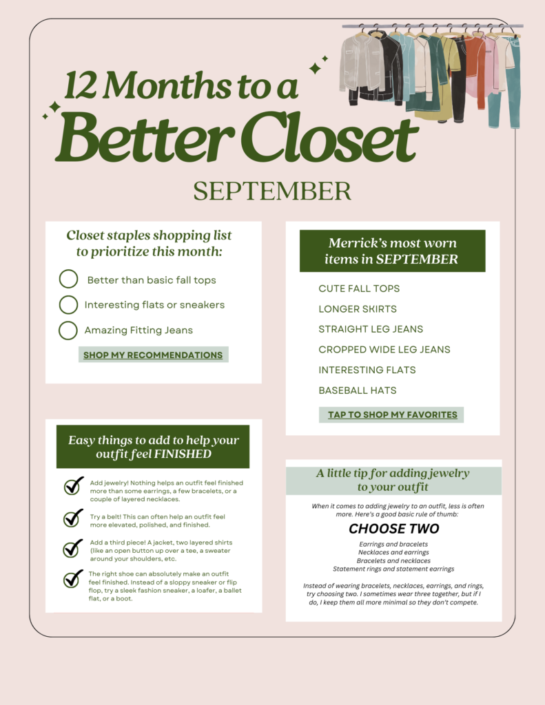 Hi, I’m Merrick! I’m a stylist, clothing designer, and a mom. I’m passionate about helping women feel confident in clothes, build an amazing wardrobe, and feel happy. Come on in and stay a while!