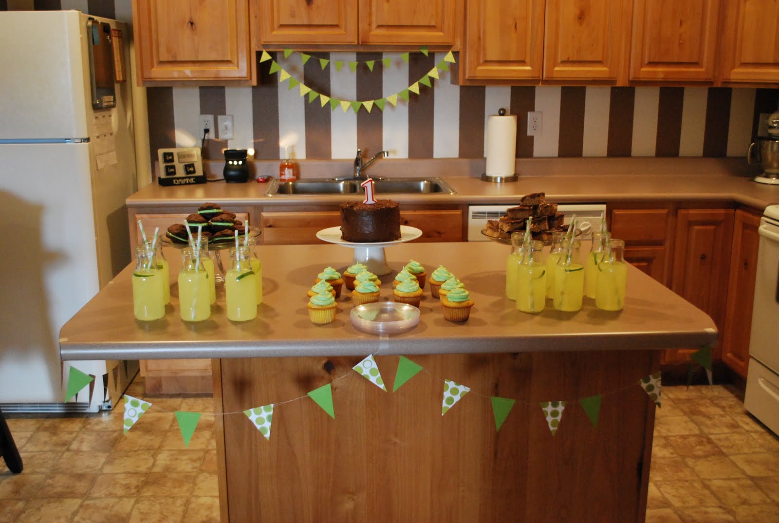 I tried to come up with some kind of theme for Peanut’s party, just to tie everything together, but struggled to come up with something that I liked. About six months ago, I had pulled out my Hello, Cupcake cookbook and told Philip I was thinking about doing a creation from there for Peanut’s birthday. We searched through it and decided upon Old Swampy. Well, once the party began looming nearer and my little sister’s graduation happened to be the same day, and company was in town that entire weekend, I knew that poor Old Swampy would NEVER happen in my rush to get things done. But in his loving memory, I decided on a Green theme. It wasn’t much, but it was enough to hold everything together.