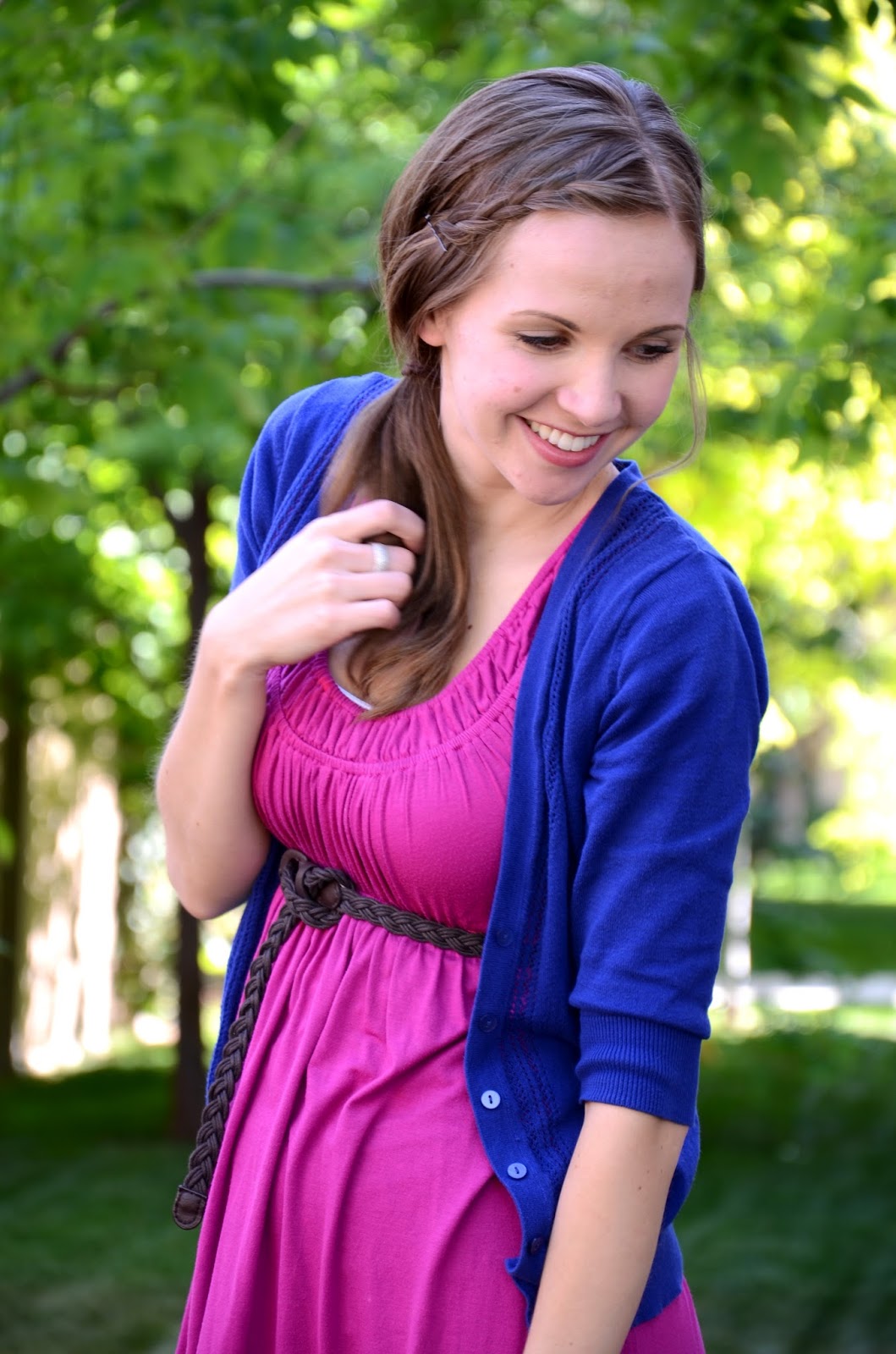 You look great. I love those colors together, I love your hair, and I love the hint of the baby bump.
