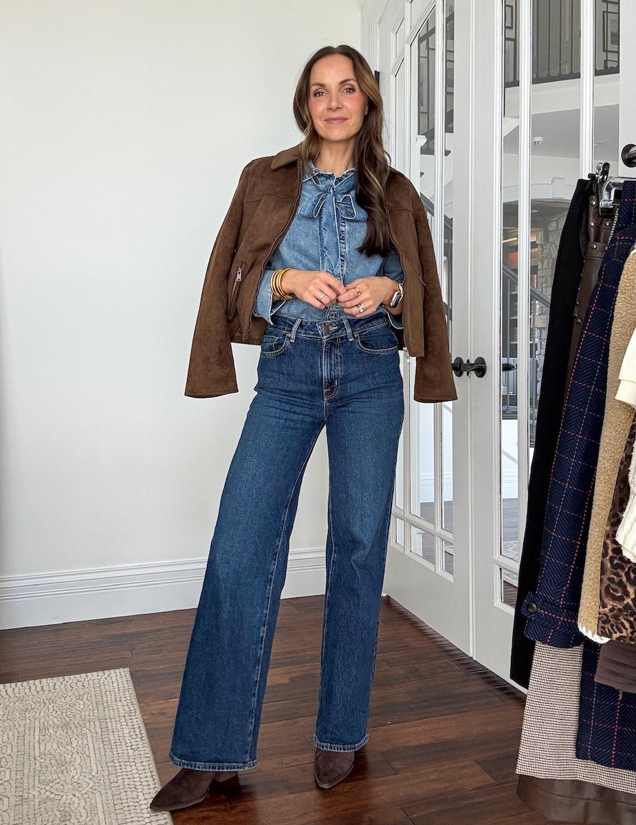 SUEDE JACKT | DENIM BOW TOP | TREASURE & BOND JEANS | SAM EDELMANT BOOTS