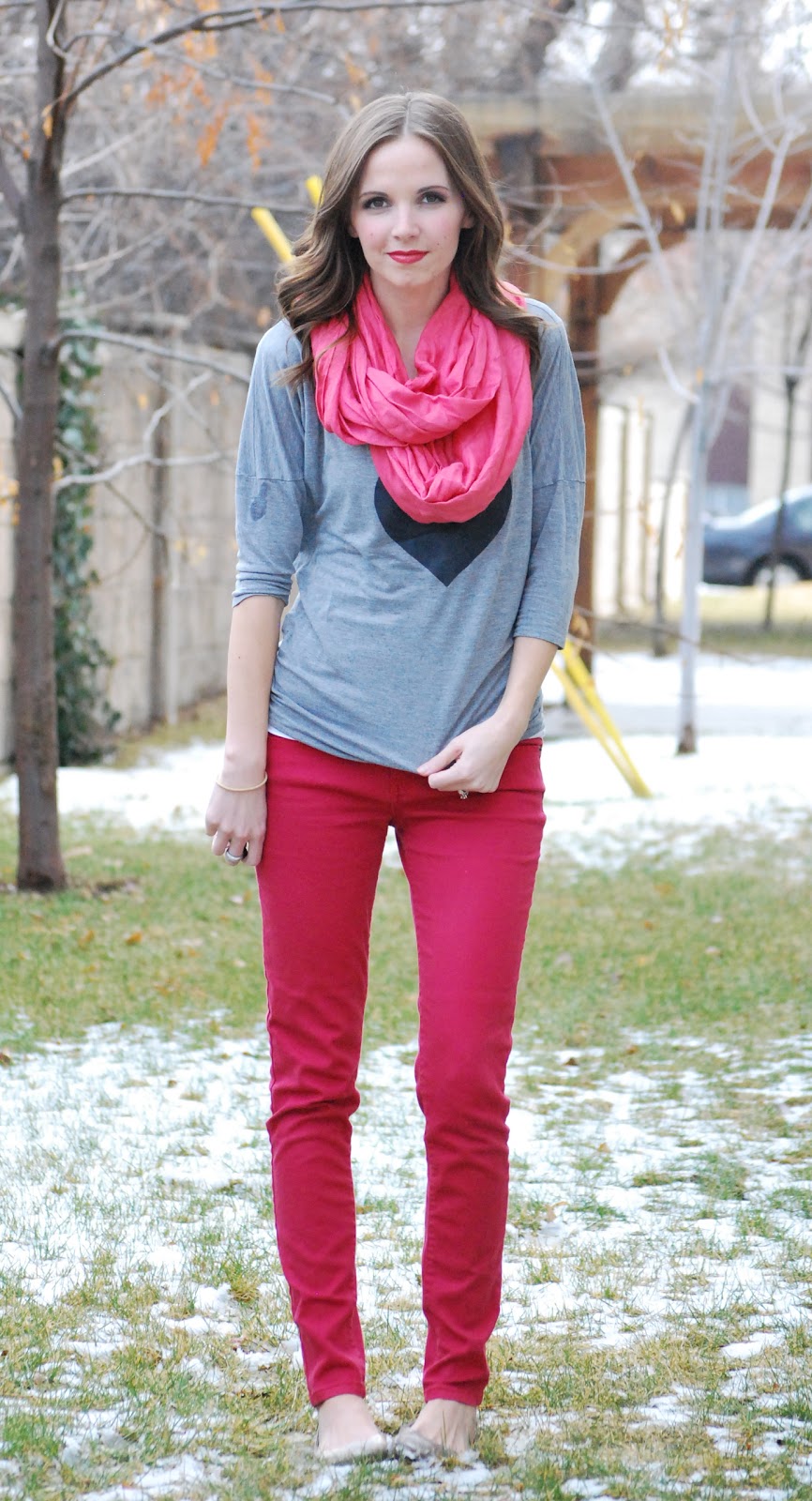 This is so cute!!! I adore your shirt and the red pants with a pink scarf. I am loving going through everyone's outfits to see how they are wearing pink and red!