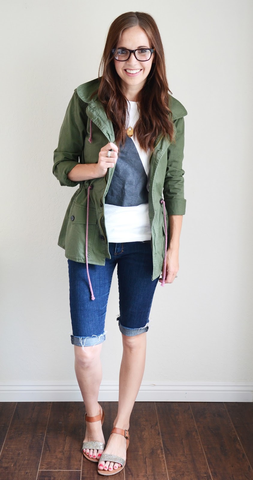 3. Jean cut-offs and a graphic tee is a super simple and casual look, but adding a fun army jacket,