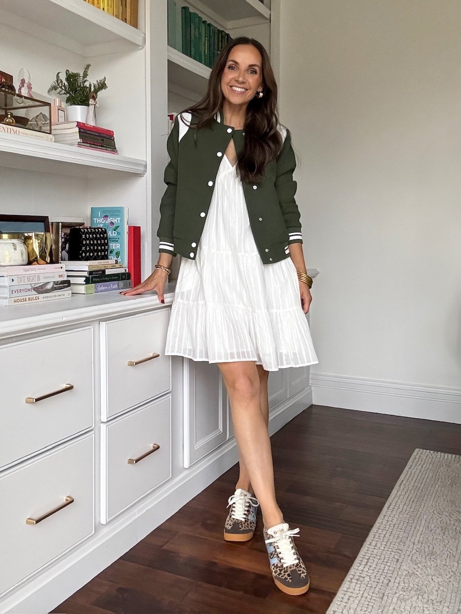 A dress always keeps you more cool in the fall! Tie a lightweight layer around your waist, a button down shirt or long sleeve tee.