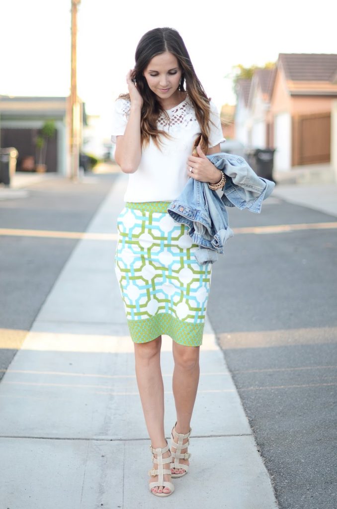 Today I’m teaming up with Jo-Ann’s to celebrate the 90th anniversary of their Waverly fabric, a line of gorgeous home decor fabrics. They sent me this gorgeous green and teal graphic print fabric, and although it’s intended for home decor, I went outside the box a bit and made myself a fun patterned skirt with it, inspired by this gorgeous Anthropologie skirt.